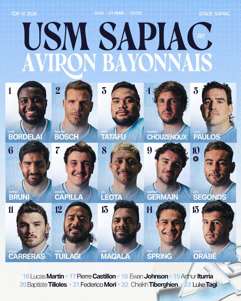 La composition d’équipe pour ce déplacement à l’USM Sapiac avec un coup d’envoi à 16h35.